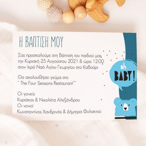 Προσκαλέστε επίσημα τους φίλους, την οικογένεια και τους αγαπημένους σας στο μυστήριο της Βάπτισης του αγοριού σας ή του κοριτσιού σας με το ομορφότερο προσκλητήριο Βάπτισης! Είτε πρόκειται για μια vintage ή ρομαντική Βάπτιση στην Αθήνα, είτε για μια πρωτότυπη Βάπτιση στη Θεσσαλονίκη, θα δημιουργήσετε μια μοναδική πρόσκληση ακριβώς όπως την έχετε ονειρευτεί
