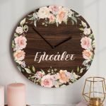 Ρολόι Τοίχου Ξύλινο με Όνομα και Σχέδιο Ανθοδέσμη