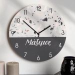 Ρολόι Τοίχου Ξύλινο με Όνομα και Σχέδιο Γκρι Μωσαϊκό