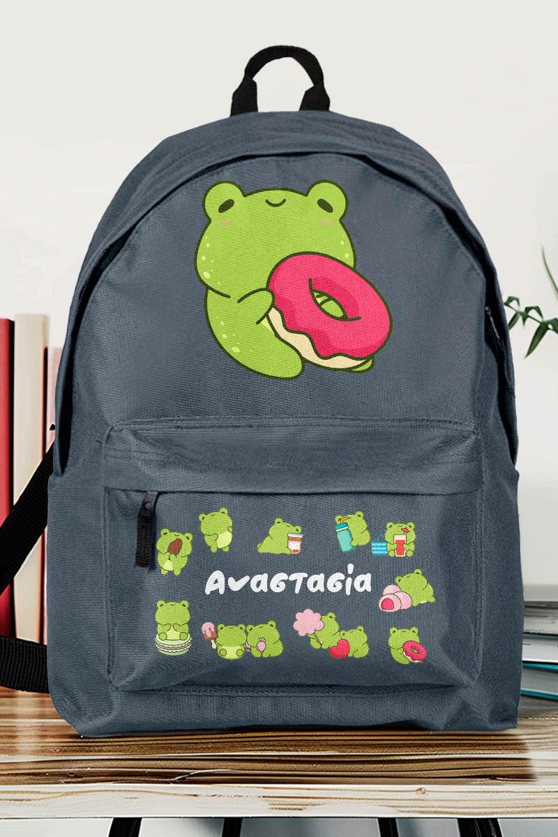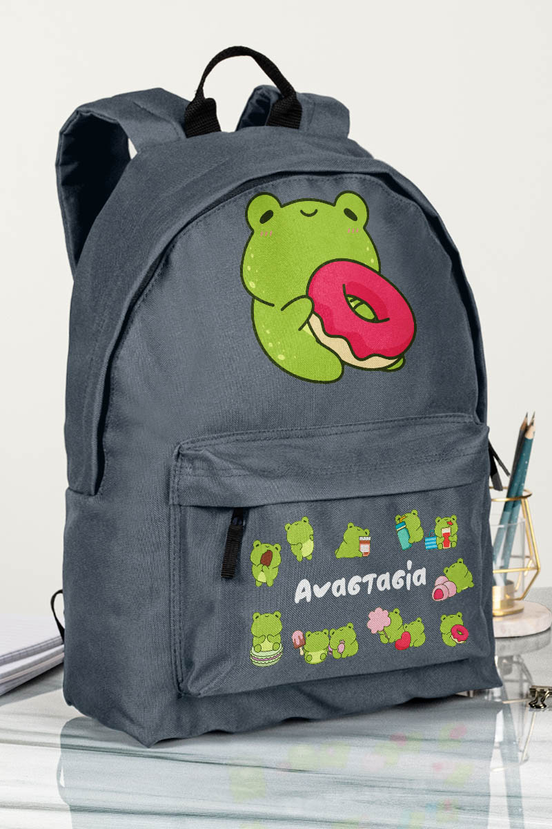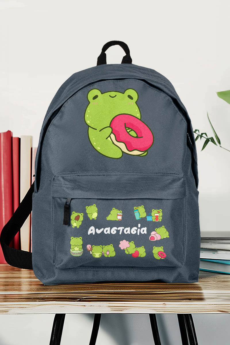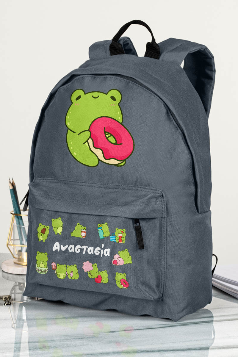 Σχολική Τσάντα για Κορίτσια Δημοτικού, Γκρι με Βατραχάκι