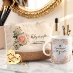 Σετ 3 Δώρα για τη Γιαγιά – Εκρού Νεσεσέρ, Κούπα & Μπρελόκ