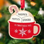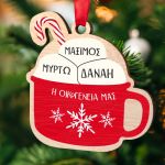 Χριστουγεννιάτικο Ξύλινο Στολίδι Δέντρου, Κούπα με 3 Ονόματα