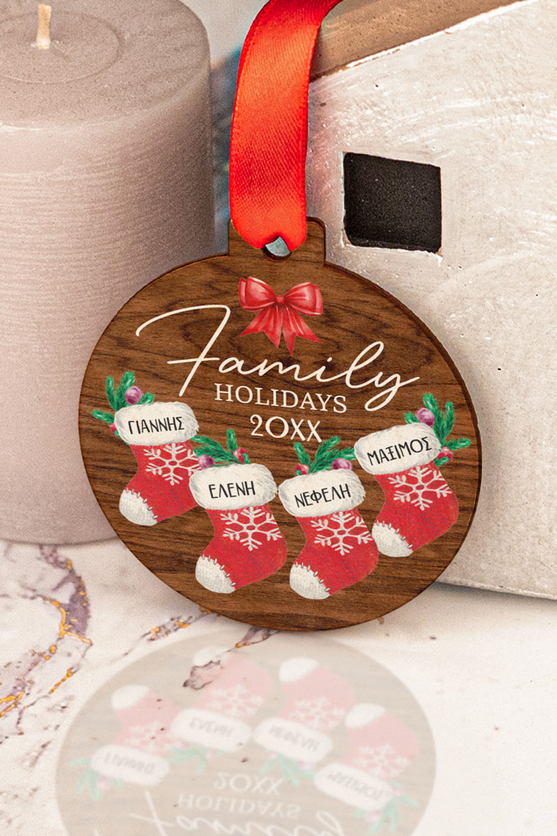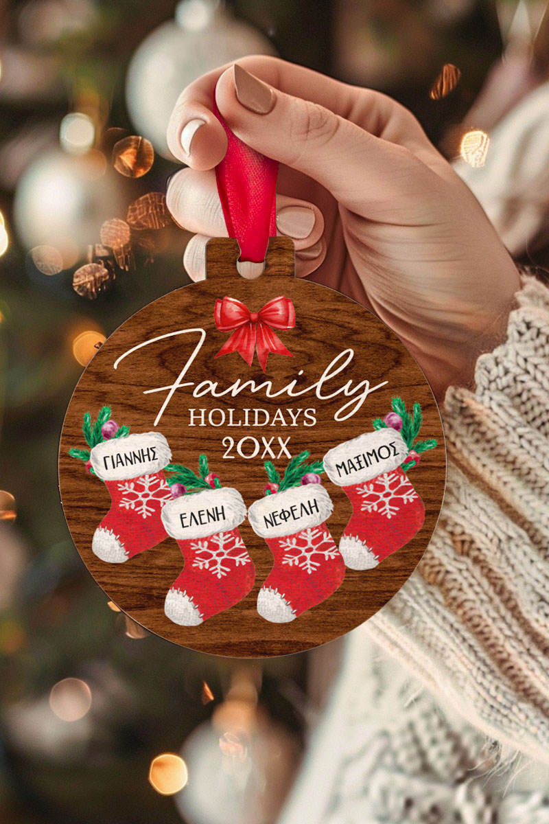 Δώρο για Οικογένεια Στολίδι Δέντρου με Ονόματα, Warm Xmas Socks