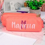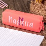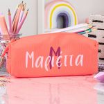 Σχολική Κασετίνα με Όνομα, σε Κοραλί Χρώμα & Σχέδιο The Bestie Monogram