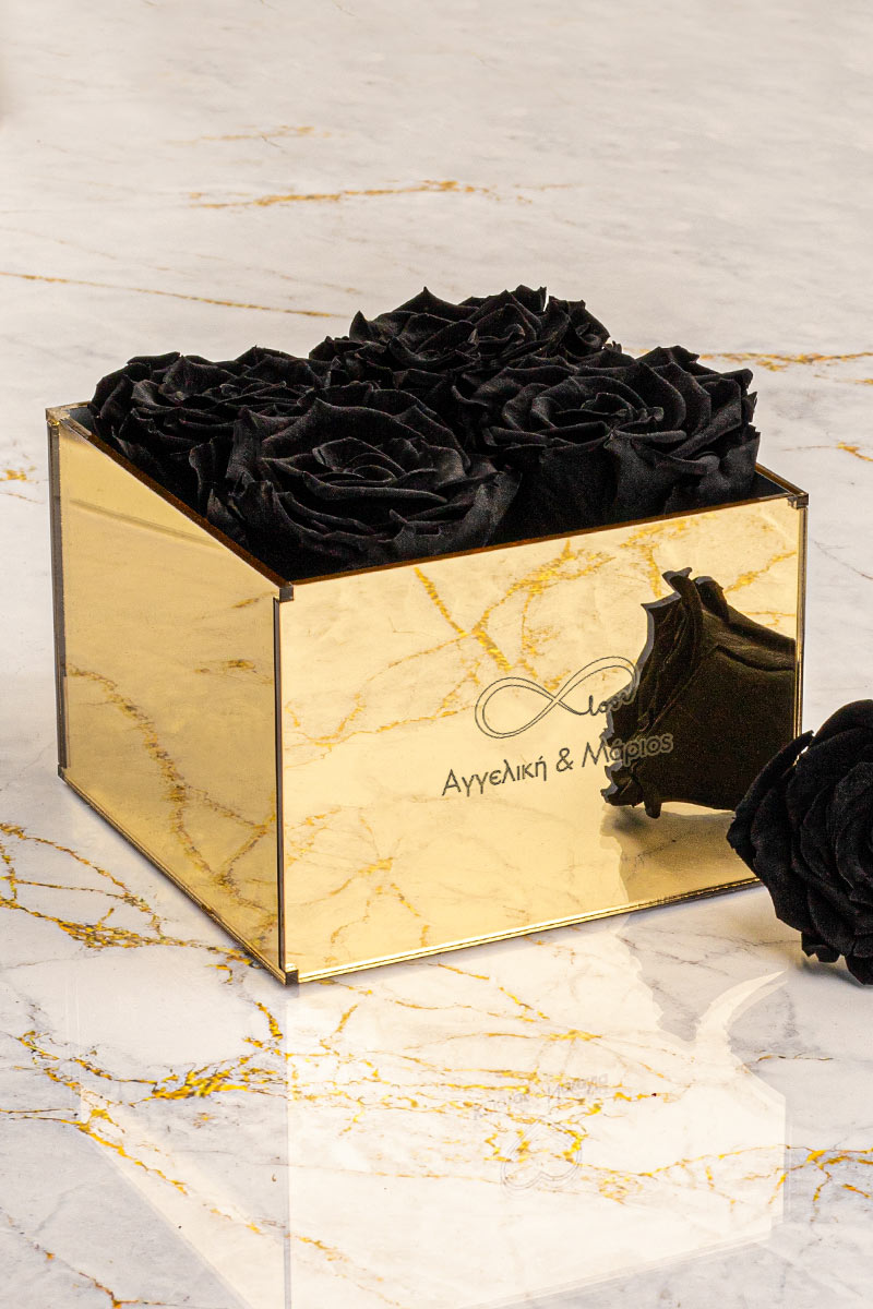 Τα τριαντάφυλλα έρχονται μέσα σε κομψό κουτί από plexiglass golden mirror, προσδίδοντας μια πολυτελή αίσθηση. Αυτό που κάνει τα Παντοτινά Τριαντάφυλλα τόσο ξεχωριστά είναι η δυνατότητα προσωποποίησης. Προσθέστε κείμενα με τα ονόματα σας ή αφιερώσεις και φωτογραφίες για να δημιουργήσετε ένα ενθύμιο που θα μείνει αξέχαστο.