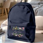 Τσάντα Σχολική Μπλε για Κορίτσια με Όνομα & Σχέδιο Λουλούδια