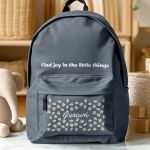 Τσάντα Σχολική για Δημοτικό & Γυμνάσιο, Γκρι με Μαργαρίτες