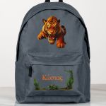 Τσάντα Σχολική για Δημοτικό & Γυμνάσιο, Γκρι με Τίγρη