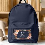 Τσάντα Σχολική για Γυμνάσιο & Λύκειο, Μπλε με Όνομα & Άνθη