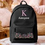 Τσάντα Σχολική για Γυμνάσιο & Λύκειο, Μαύρη με Λουλούδια