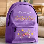 Τσάντα Σχολική για Γυμνάσιο & Λύκειο, Μωβ με Ανθισμένο Κήπο