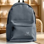 Τσάντα Σχολική Γκρι για Κορίτσια με Όνομα & Μονόγραμμα