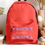 Τσάντα Σχολική Κόκκινη για Κορίτσια με Όνομα & Σχέδιο Άνθη