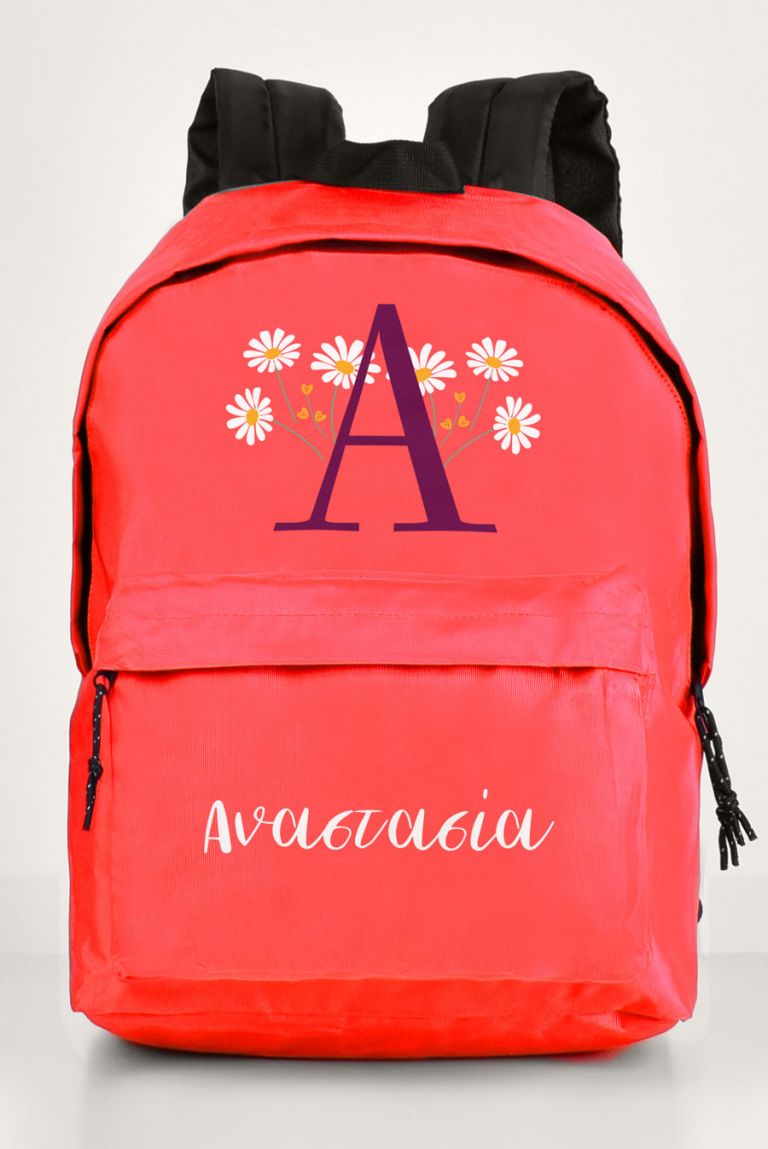 Σχολική Τσάντα Δημοτικού-Γυμνασίου-Λυκείου, Κόκκινο Χρώμα, Flower