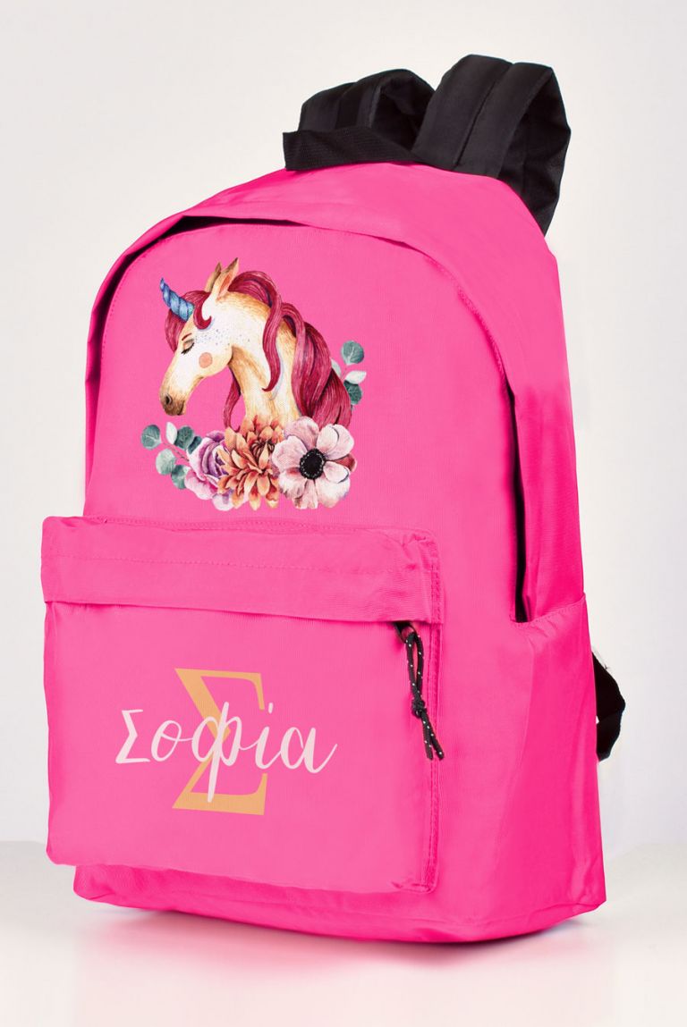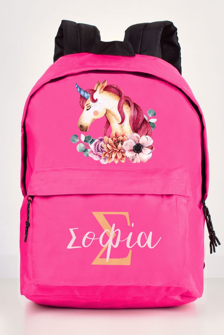 Σχολική Τσάντα Δημοτικού, σε Χρώμα Φούξια, Unicorn Name