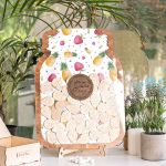Κρατήστε τις ευχές των αγαπημένων σας με τον πιο πρωτότυπο τρόπο. Η ξύλινη κατασκευή λειτουργεί όπως ένας <<κουμπαράς>>. Προσωποποιήστε το ευχολόγιο με το ονόματά σας & την ημερομηνία του μυστηρίου.