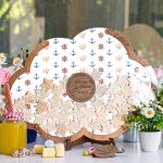 Κρατήστε τις ευχές των αγαπημένων σας με τον πιο πρωτότυπο τρόπο. Η ξύλινη κατασκευή λειτουργεί όπως ένας <<κουμπαράς>>. Προσωποποιήστε το ευχολόγιο βάπτισης με το όνομα του παιδιού και την ημερομηνία του μυστηρίου.