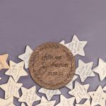 Κρατήστε τις ευχές των αγαπημένων σας με τον πιο πρωτότυπο τρόπο. Η ξύλινη κατασκευή λειτουργεί όπως ένας <<κουμπαράς>>. Προσωποποιήστε το ευχολόγιο βάπτισης με το όνομα του παιδιού και την ημερομηνία του μυστηρίου.