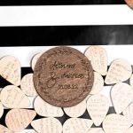 Κρατήστε τις ευχές των αγαπημένων σας με τον πιο πρωτότυπο τρόπο. Η ξύλινη κατασκευή λειτουργεί όπως ένας <<κουμπαράς>>. Προσωποποιήστε το ευχολόγιο με το ονόματά σας & την ημερομηνία του μυστηρίου.