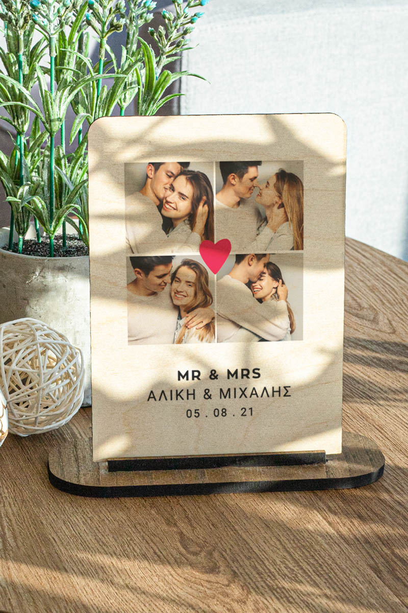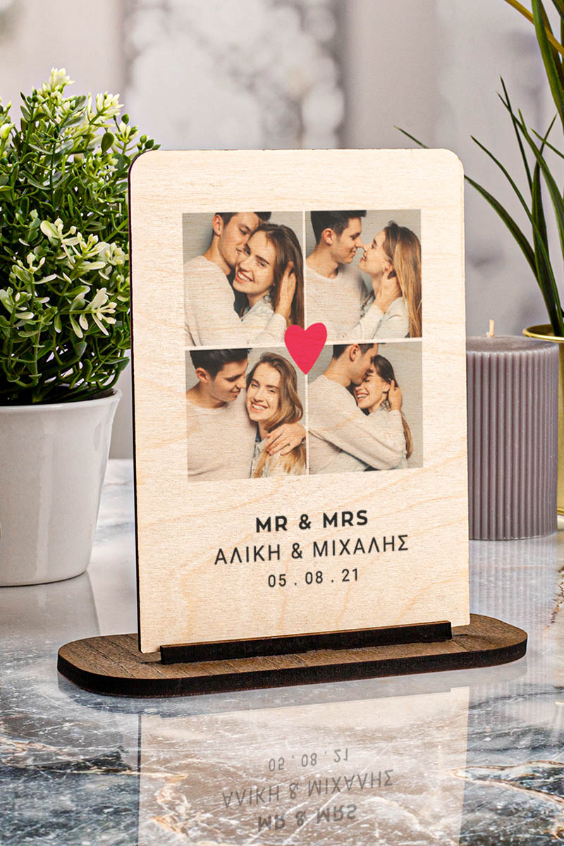 Επιτραπέζια Ξύλινη Κορνίζα, Mr And Mrs Heart