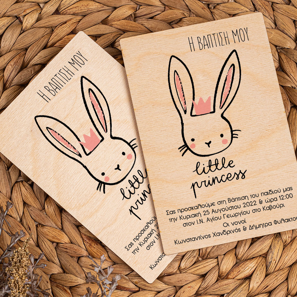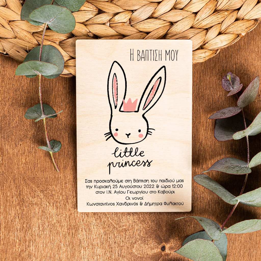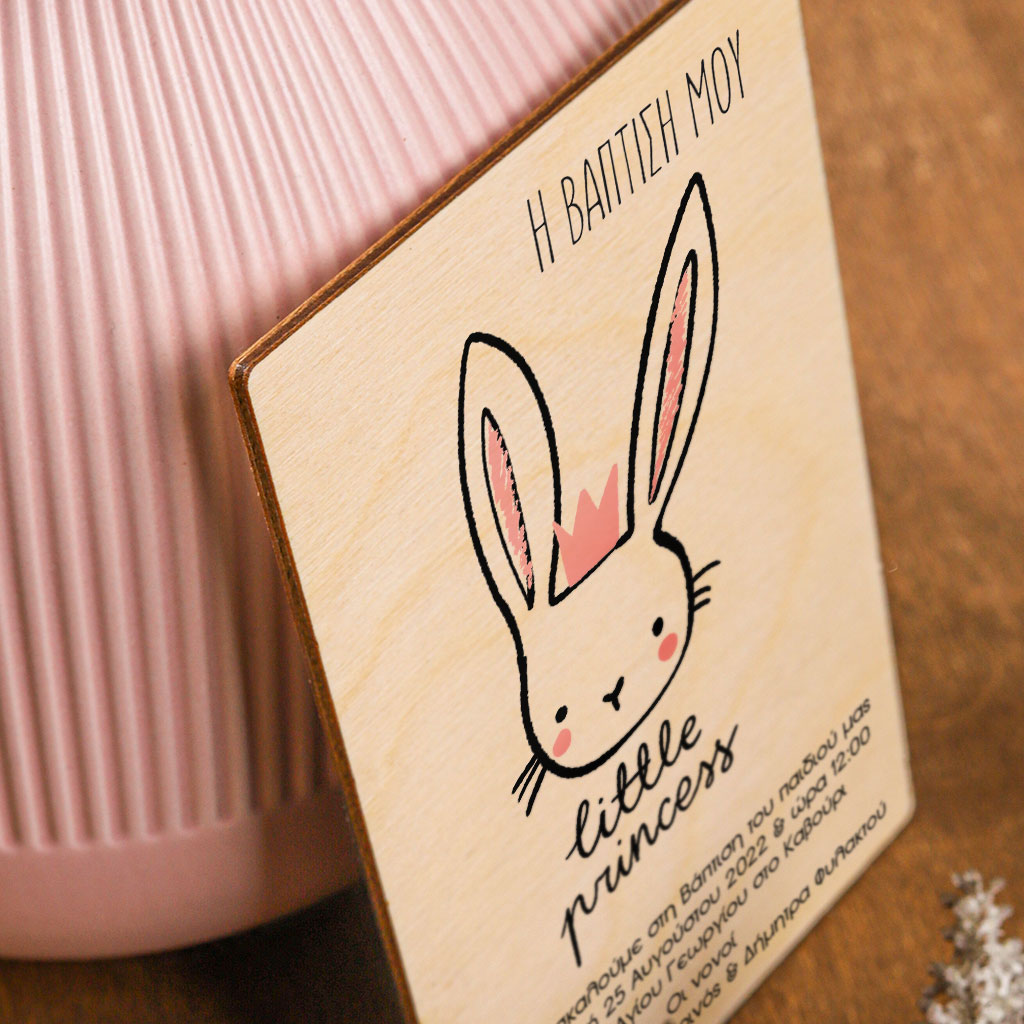 Πρόσκληση Βάπτισης με Σχέδιο Cute Bunny Princess