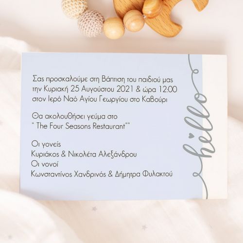 Η δημιουργία & η εκτύπωση των προσκλητηρίων της Βάπτισης του μωρού σας είναι διασκεδαστικότερη & ευκολότερη από ποτέ. Προσθέστε στα προσκλητήρια Βάπτισης του αγοριού ή του κοριτσιού σας, πρωτότυπα, vintage, μοντέρνα ή ρομαντικά, γραφικά και κείμενα. Σε λίγα λεπτά, μπορείτε να παραγγείλετε online, εύκολα και οικονομικά τις προσκλήσεις της Βάπτισης του παιδιού σας & σε ελάχιστες ημέρες να τις παραλάβετε στο χώρο σας.