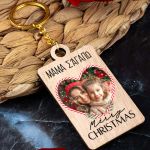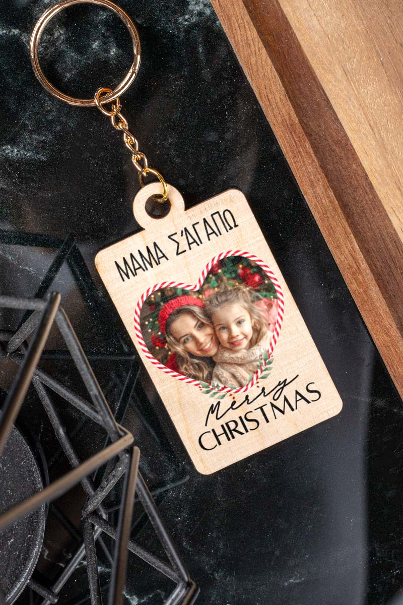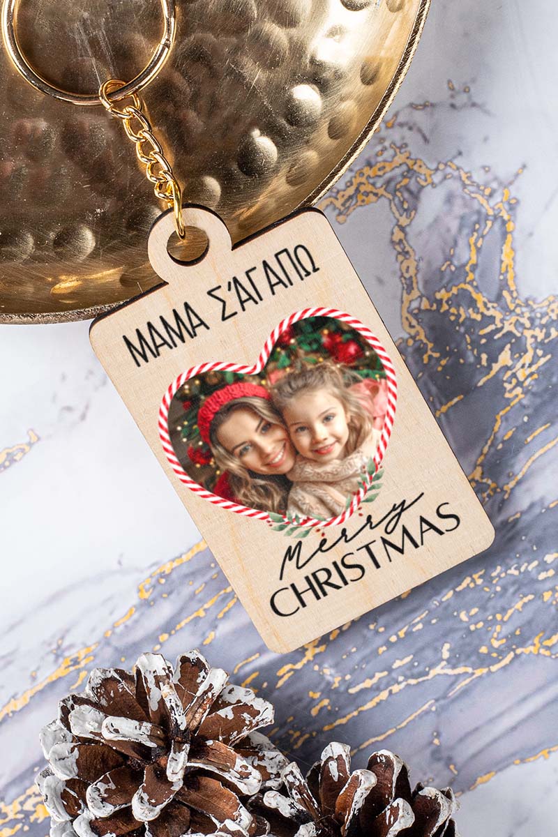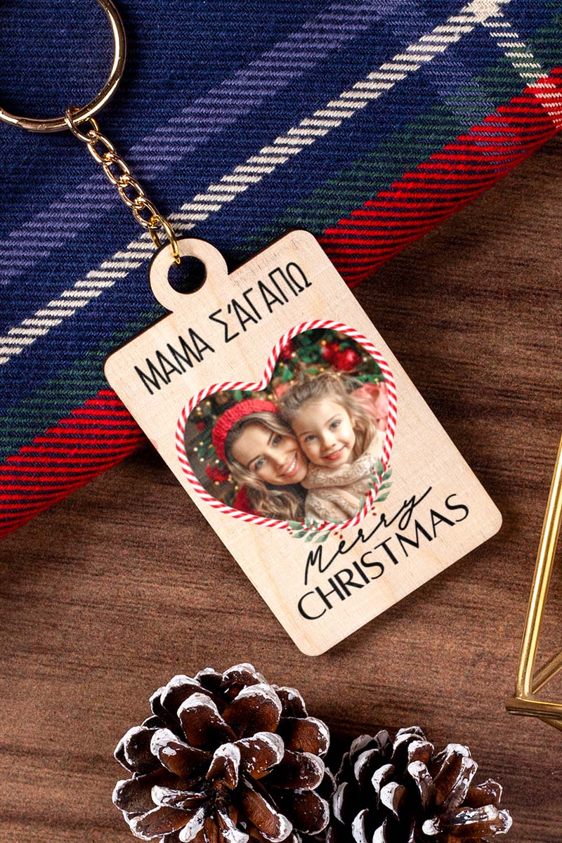 Χριστουγεννιάτικο Ξύλινο Μπρελόκ με Φωτογραφία, Δώρο για Μαμά