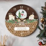 Χριστουγεννιάτικο Ρολόι Τοίχου Ξύλινο με Όνομα και Σχέδιο Κερία