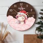 Χριστουγεννιάτικο Ρολόι Τοίχου Ξύλινο με Όνομα και Σχέδιο Unicorn